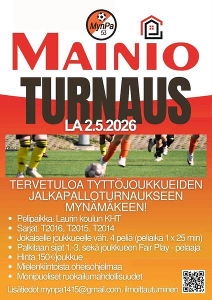 Turnauksen järjestää MynPa2015 joukkue. Lisätiedot ja kyselyt mynpa1415@gmail.com, Turnausvastaava Hanna Hyvönen 044-2727228